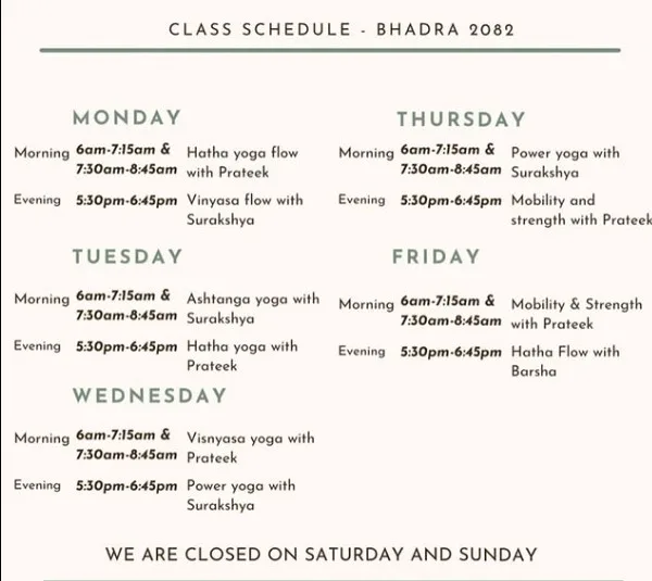 Learn from some of the most seasoned yoga teachers in Nepal & Abroad, including our founder, Ms. Surakshya Basnyat, whose expertise enriches every session.